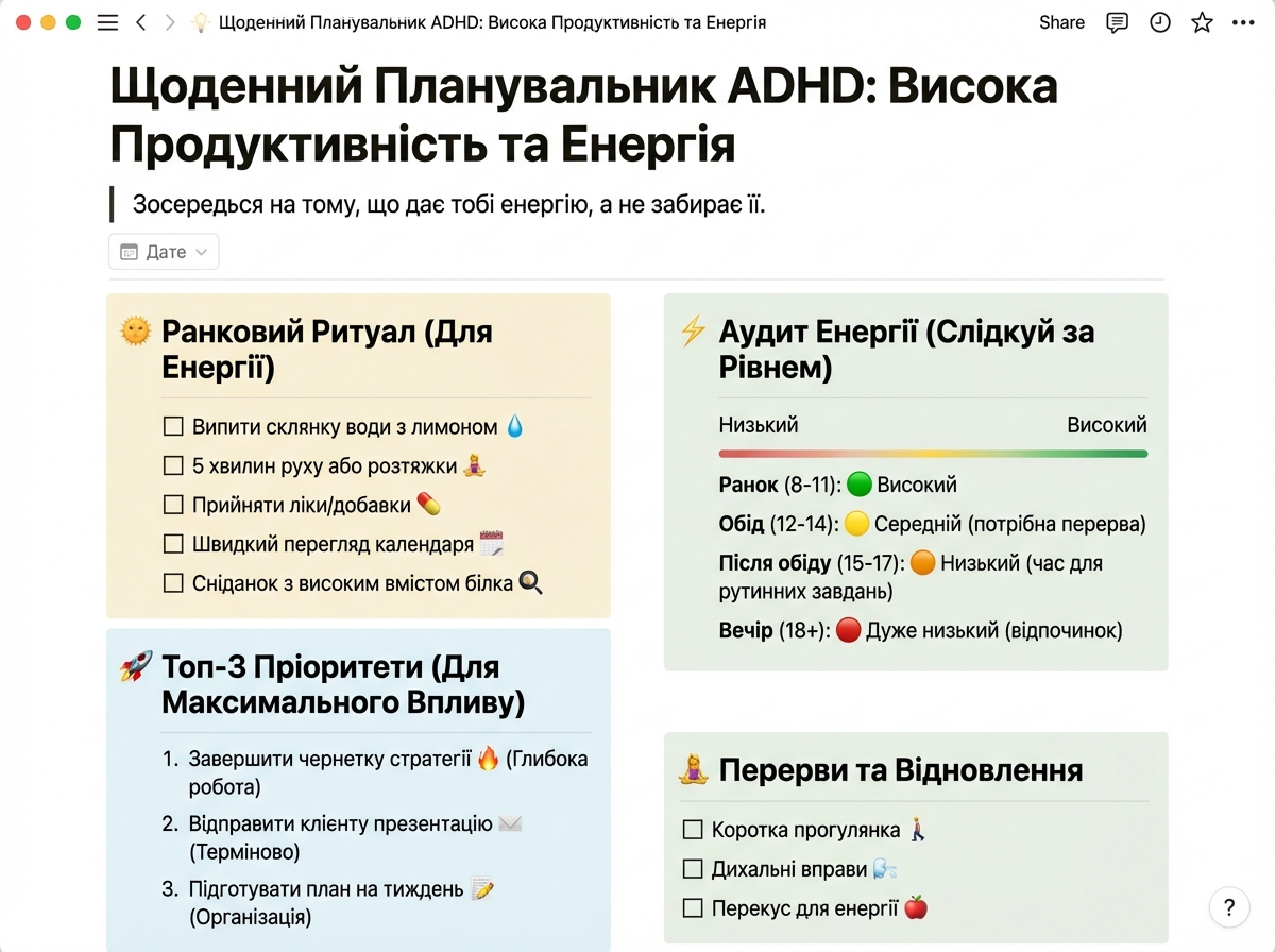 “Менше внутрішнього шуму зранку: бачу, з чого почати, без хаосу.”