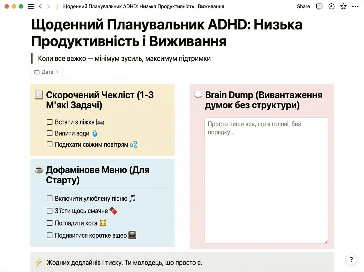 Система планування для людей з РДУГ та тих, хто втомився від провини за «порожні» дні.