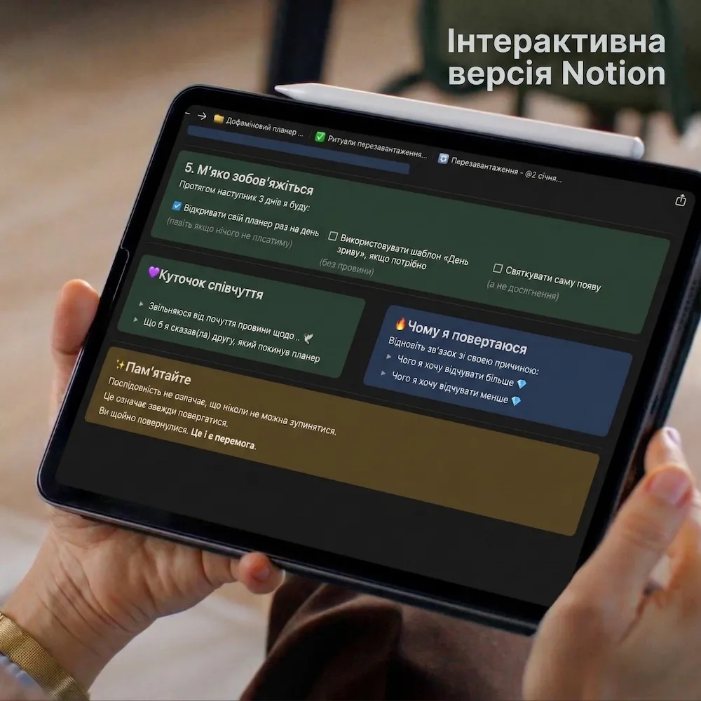 “Brain dump врятував мене від вечірньої тривоги. Вивантажую все — і відпускаю.”